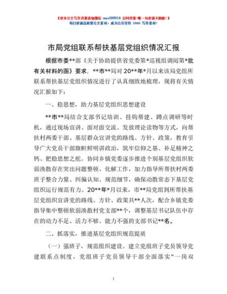 / 市局党组联系帮扶基层党组织情况汇报