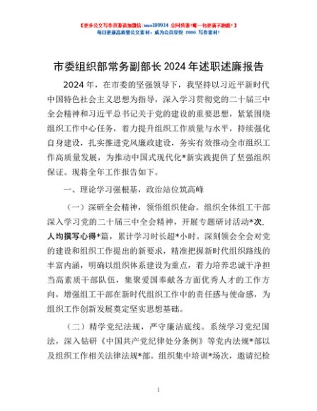 / 市委组织部常务副部长2024年述职述廉报告