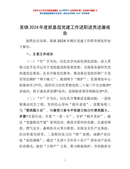 / 某镇2024年度抓基层党建工作述职述责述廉报告