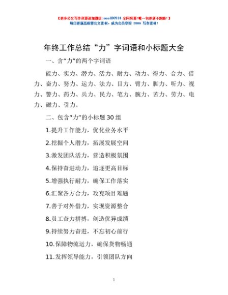 / 年终工作总结“力”字词语和小标题大全