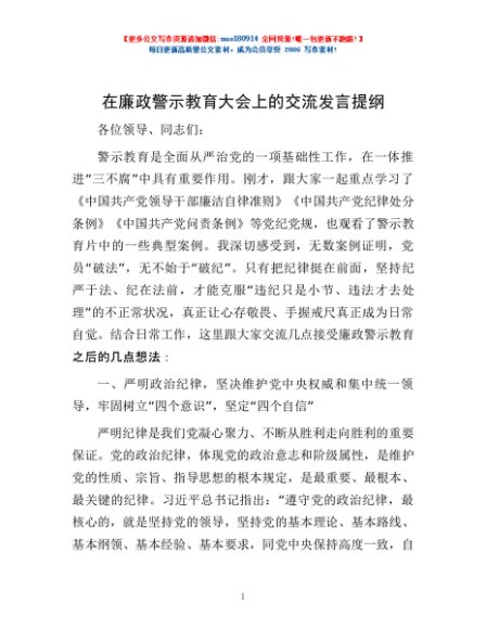 / 在廉政警示教育大会上的交流发言提纲