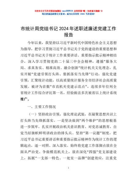 / 市统计局党组书记2024年述职述廉述党建工作报告