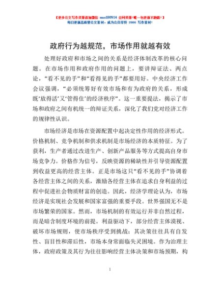 / 政府行为越规范,市场作用就越有效