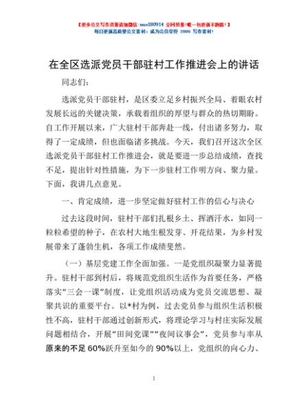 / 在全区选派党员干部驻村工作推进会上的讲话