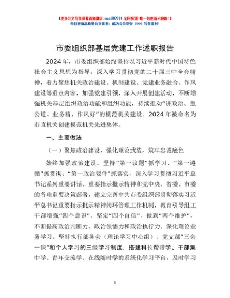 / 市委组织部基层党建工作述职报告