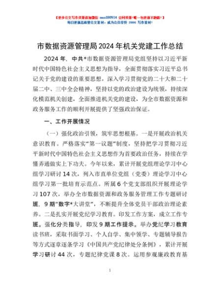 / 市数据资源管理局2024年机关党建工作总结
