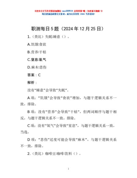 / 职测每日5题(2024年12月25日)