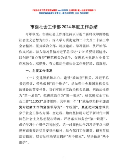 / 市委社会工作部2024年度工作总结