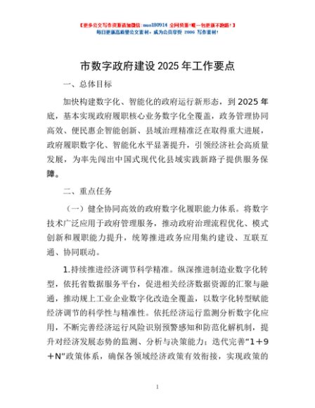 / 市数字政府建设2025年工作要点