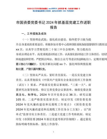 / 市国资委党委书记2024年抓基层党建工作述职报告