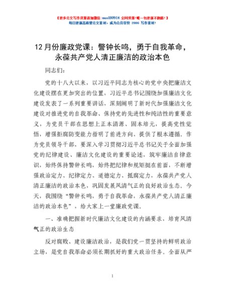 12月份廉政党课:警钟长鸣,勇于自我革命,永葆共产党人清正廉洁的政治本色