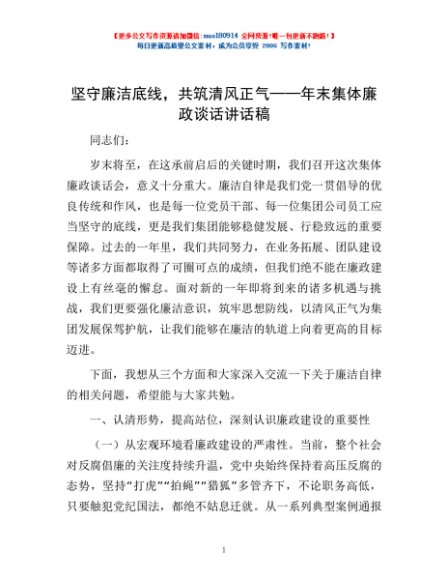 / 坚守廉洁底线,共筑清风正气——年末集体廉政谈话讲话稿