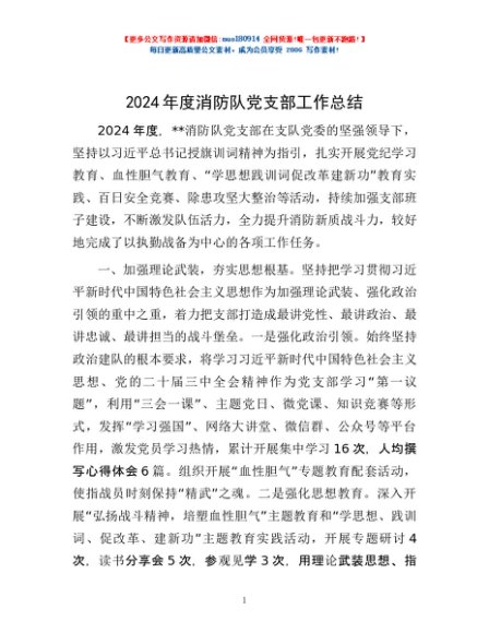/ 2024年度消防队党支部工作总结