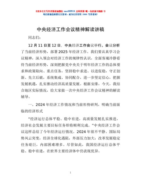 / 中央经济工作会议精神解读讲稿
