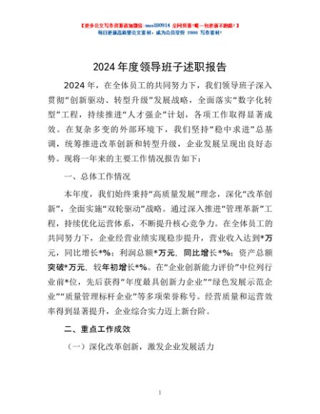 / 2024年度领导班子述职报告