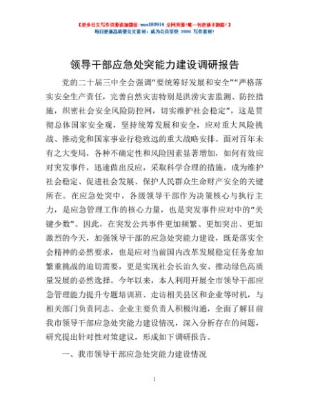 / 领导干部应急处突能力建设调研报告