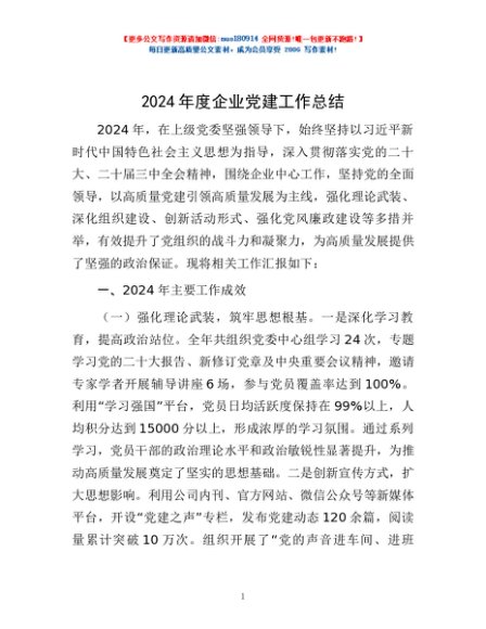 / 2024年度企业党建工作总结
