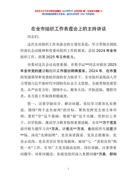 / 在全市组织工作务虚会上的主持讲话