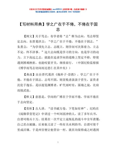 【写材料用典】学之广在于不倦,不倦在于固志