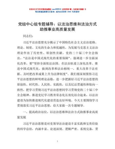 / 党组中心组专题辅导: 以法治思维和法治方式助推事业高质量发展