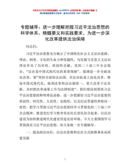 / 专题辅导:进一步理解把握习近平法治思想的科学体系、精髓要义和实践要求,为进一步深化改革提供法治保障
