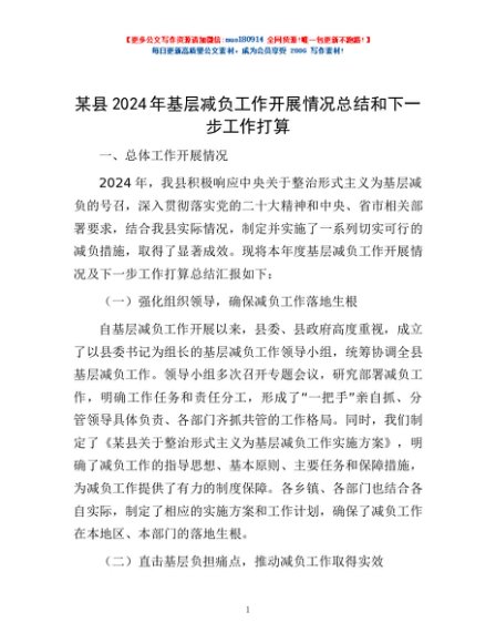 / 某县2024年基层减负工作开展情况总结和下一步工作打算