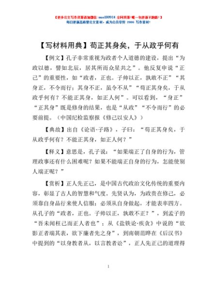 【写材料用典】苟正其身矣,于从政乎何有