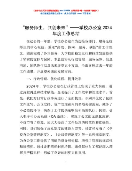 / “服务师生,共创未来”——学校办公室2024年度工作总结