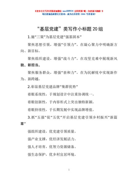 / “基层党建”类写作小标题20组