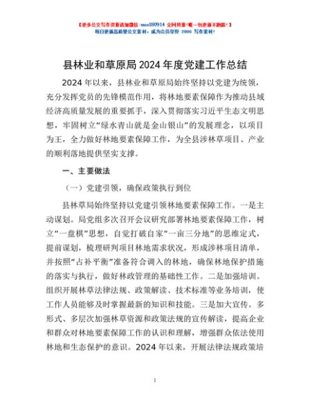 / 县林业和草原局2024年度党建工作总结