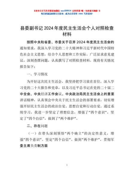 / 县委副书记2024年度民主生活会个人对照检查材料