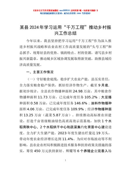 / 某县2024年学习运用“千万工程”推动乡村振兴工作总结