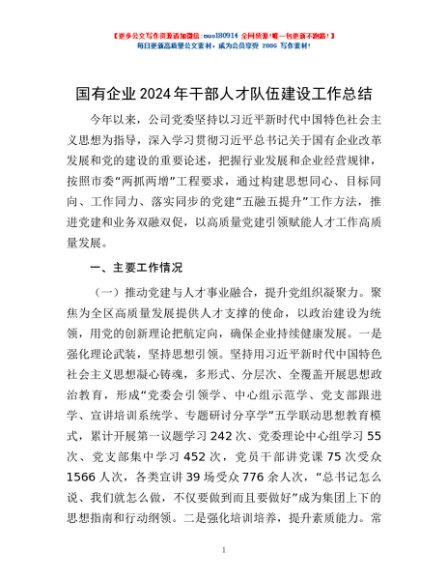 / 国有企业2024年干部人才队伍建设工作总结