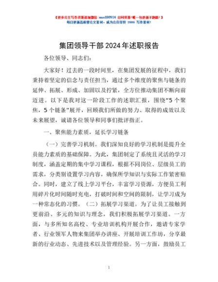 / 集团领导干部2024年述职报告