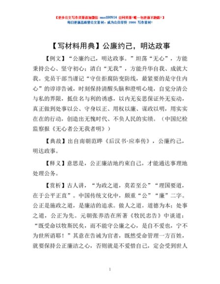 / 【写材料用典】公廉约己,明达政事