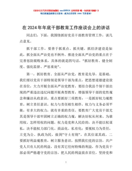 / 在2024年年底干部教育工作座谈会上的讲话