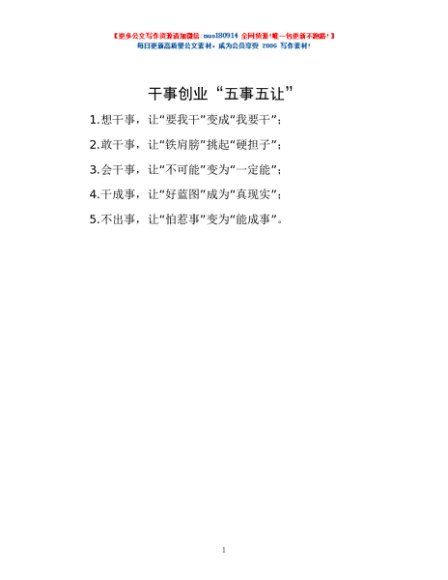 / 干事创业“五事五让”