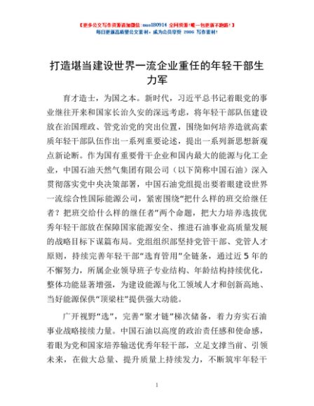 / 打造堪当建设世界一流企业重任的年轻干部生力军