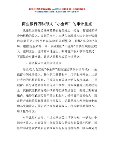 / 商业银行四种形式“小金库”的审计重点