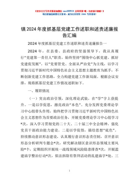 / 镇2024年度抓基层党建工作述职和述责述廉报告汇编