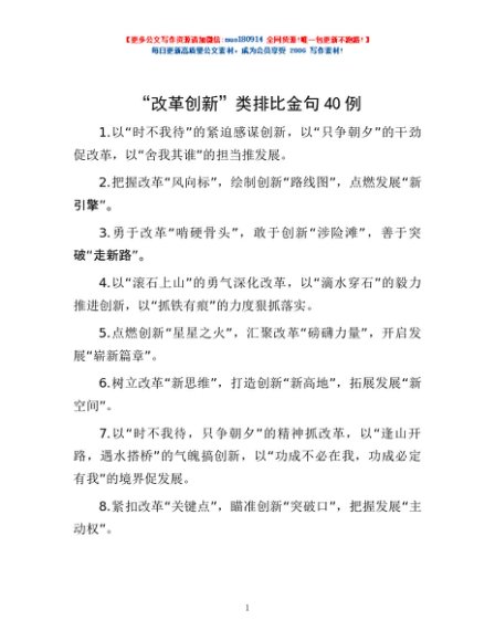 / “改革创新”类排比金句40例