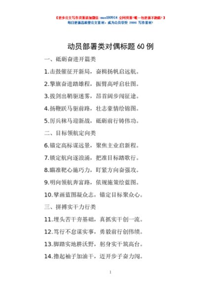 / 动员部署类对偶标题60例