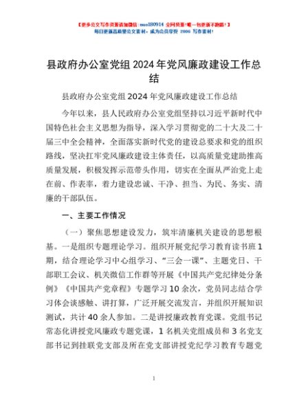 / 县政府办公室党组2024年党风廉政建设工作总结