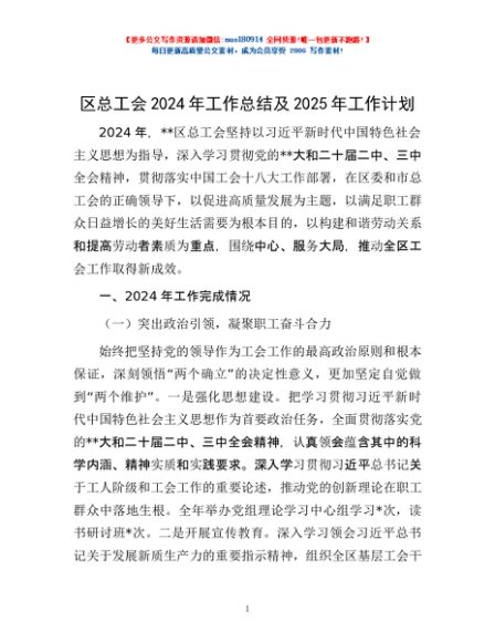 / 区总工会2024年工作总结及2025年工作计划