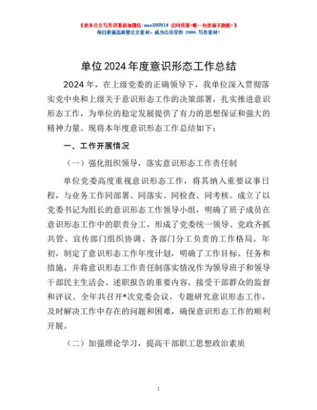 / 单位2024年度意识形态工作总结