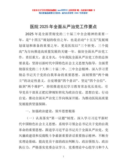 / 医院2025年全面从严治党工作要点