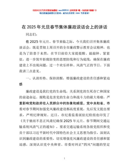 / 在2025年元旦春节集体廉政谈话会上的讲话