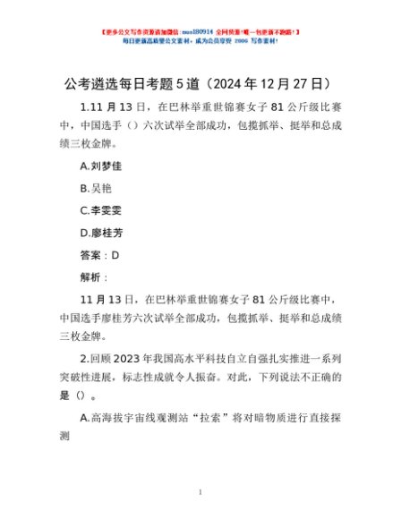 / 公考遴选每日考题5道(2024年12月27日)