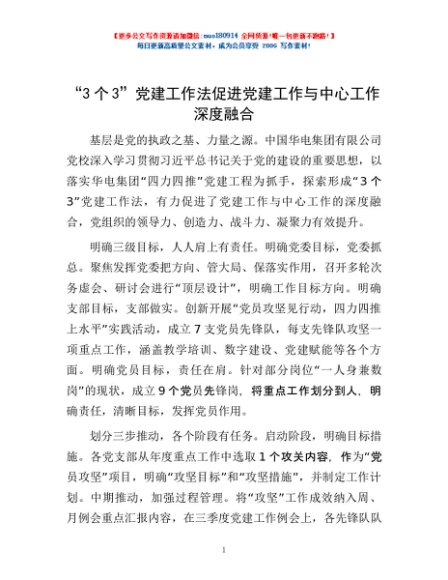 / “3个3”党建工作法促进党建工作与中心工作深度融合