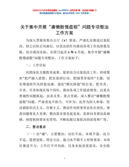 / 关于集中开展“庸懒散慢虚粗”问题专项整治工作方案